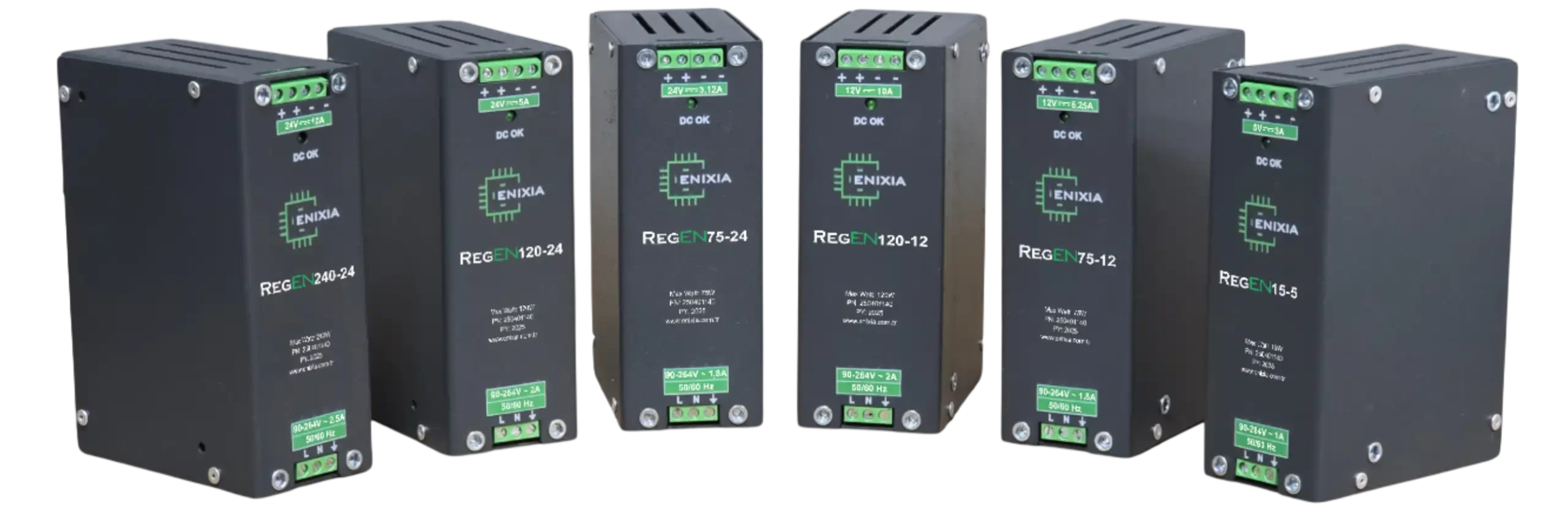 Endüstriyel otomasyon süreçlerinin ve hassas elektronik enstrümanların operasyonel sürekliliği için tasarlanan Enixia REGEN Serisi, enerji yönetiminde üstün stabilite performansını standartize etmektedir. Geniş bir çıkış spektrumuna sahip olan REGEN ailesi; AC/DC şebeke girişini, sistem gereksinimlerinize uygun olarak 5V, 9V, 12V, 24V veya 48V DC değerlerine yüksek verimlilikle dönüştürerek kritik ekipmanlarınız için izole ve regüleli bir enerji altyapısı tesis eder.
